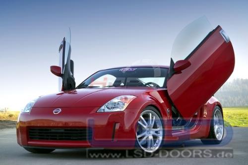 Kompletní systém vertikálního otevírání dveří LSD (Lambo Style Doors) pro Nissan 350Z typ Z33, rok výroby 10/03-, včetně Cabrio. Originální systém od německého výrobce KW Automotive. Jednoduchá montáž na originální úchyty pantů dveří bez nutnosti zásadních zásahů do karoserie vozu. Kompletní dodávka včetně montážního příslušenství. Bezpečný systém testovaný crash testy. Homologace TÜV.