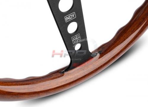 Sportovní volanty Momo řady Heritage Line jsou určené především k zástavbě do klasických vozidel, veteránů, oldtimerů atp. Volant disponuje kruhovými výřezy v ramenou, frézovaným logem Momo a názvem volantu "Indy" ve spodním části. Věnec volantu je zhotoven z lesklého dřeva v hnědém odstínu. Jednotlivá ramena jsou v černém provedení.