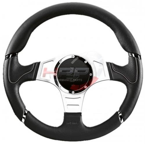 Volant Momo Millenium Sport - černý/stříbrný - kůže. Průměr 350mm.