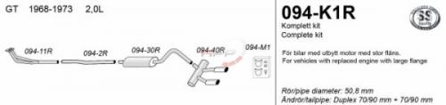 Výfukový systém Simons Opel GT 2.0 (68-73). Kompletní výfukový systém od svodů.