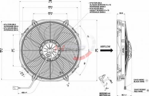 Vysoce výkonný ventilátor Spal - sací, průměr 385mmVysoce výkonný ventilátor Spal - sací, průměr 385mm