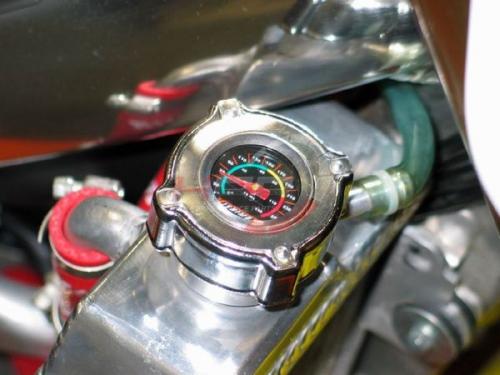 Integrovaný teploměr pro snadné zjištění teplotního stavu chladící kapaliny. Nahrazuje sériové víčko chladiče. Poskytuje efektivnější chlazení s vyšší tepelnou odolností a minimálními ztrátami. Udrží tlak až 1,3 baru (19lbs). Pasuje na vodní chladiče s průměrem plnícího hrdla 31-32mm.