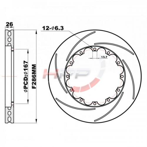 Zadní brzdové kotouče D2 Racing 286x26mm - drážkované - pevné (2009-).
