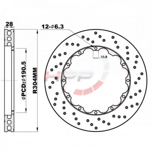 Zadní brzdové kotouče D2 Racing 304x28mm - děrované - pevné (2009-).