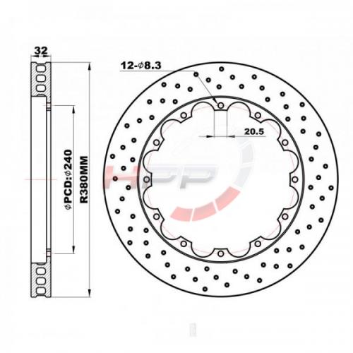 Zadní brzdové kotouče D2 Racing 380x32mm - děrované - pevné (2011-).
