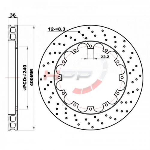 Zadní brzdové kotouče D2 Racing 400x36mm - děrované - pevné (2011-).