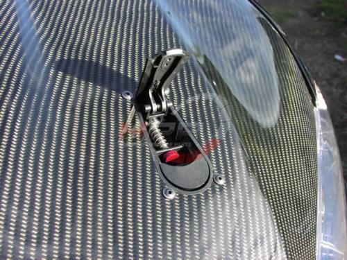 Zámky / držáky kapoty Aerocatch. Uzamykatelné. Montáž ze spodu kapoty. Barevné provedení: černé.