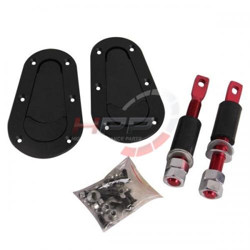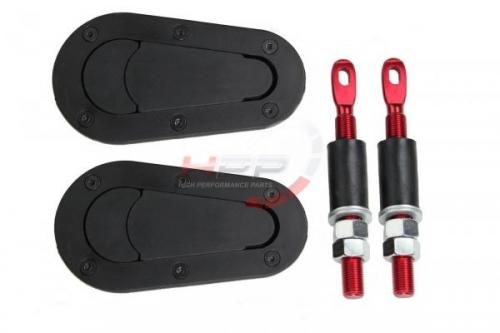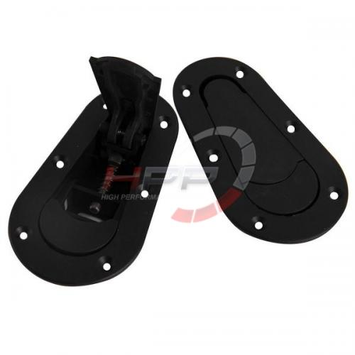 Zámky / držáky kapoty D1 Spec - černé. Standardní zavírání. Montáž z vrchu kapoty.