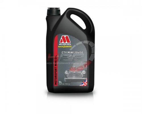 Závodní motorový olej Millers Oils Motorsport CTV 20w50 - 5l - polosyntetický olej pro společnou olejovou vanu - závodní Mini.