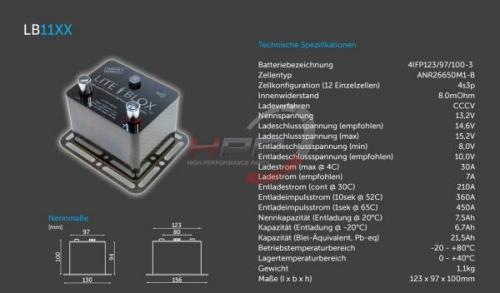 Závodní performance baterie / autobaterie Liteblox LB11XX LiFePO4 - 7.5AH, 360A 2-5 vál. motory - 1,1kg.
