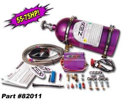 ZEX efi dry nitrous system pro 4- a 6-válcové benzínové motory. Nárůst ca 55-75 koní. Navrženo jen pro benzínové motory s vratkou do nádrže.